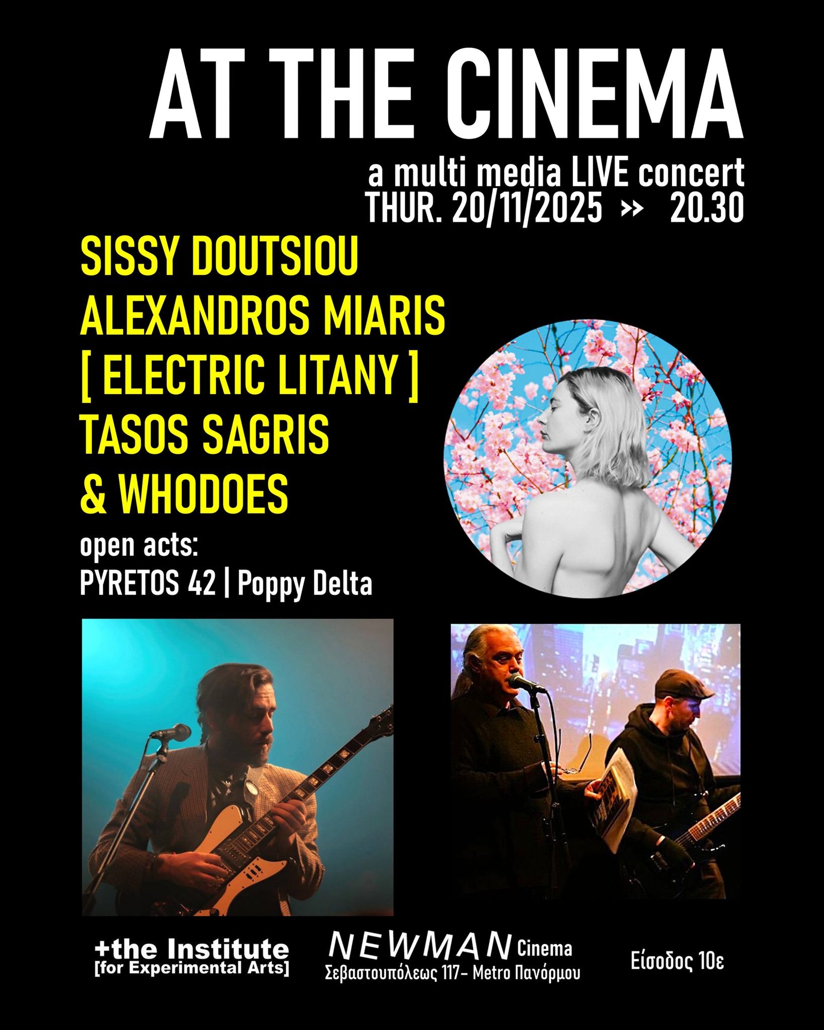 Sissy Doutsiou, actress and spoken word artist, presents her new spoken word live based on the album Insult of Public Ear Records, combining poetry, sound, theatricality and image in an intense stage narrative. Alexandros Mairis (Electric Litany) appears with a Live Cinematographic Session, where his personal compositions and the tracks of Electric Litany are accompanied by experimental screenings, giving his appearance an intense cinematic character. The duet Tasos Sagris & Whodoes brings to the field its post rock, trip hop and avant-garde electronic compositions, incorporating poetry, video art and stage practice into a immersive multimedia performance.